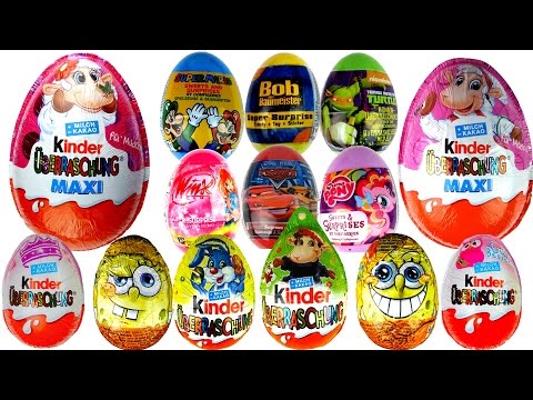 20 Surprise Eggs Kinder Surprise Disney Pixar Cars2 My Little Pony Angry Birds Winx club Hello Kitty #kindertoy #kinsurunb